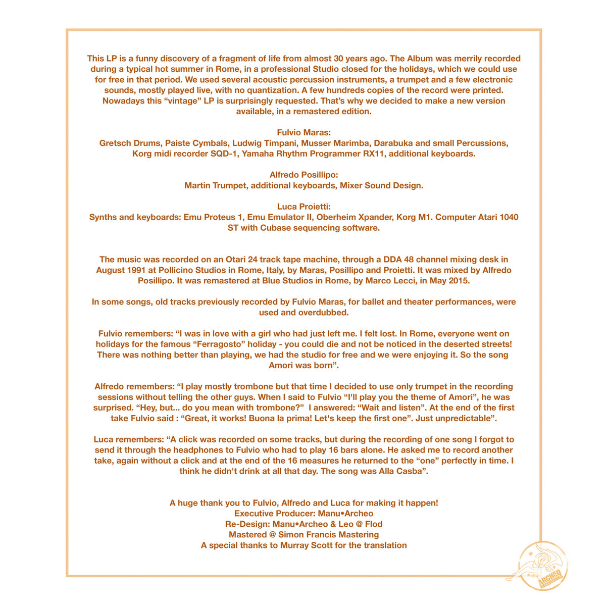 It's dedicated to the 1992 Organic / Ambient / Jazz masterpiece by the Italian Musicians Fulvio Maras, Alfredo Posillipo and Luca Proietti, containing also 2 Unreleased Bonus tracks.